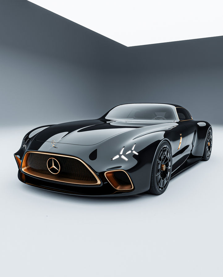 A modern tribute shaped by proportion and restraint. This concept reinterprets the legacy of the Mercedes‑Benz 300 SLR Uhlenhaut Coupé through an AMG lens - long hood, cab-rearward stance, and a sculpted shooting brake tail. Clean surfacing, star-inspired lighting, and controlled volumes frame a GT that feels heritage-rooted yet forward in presence within the Mercedes‑AMG universe.