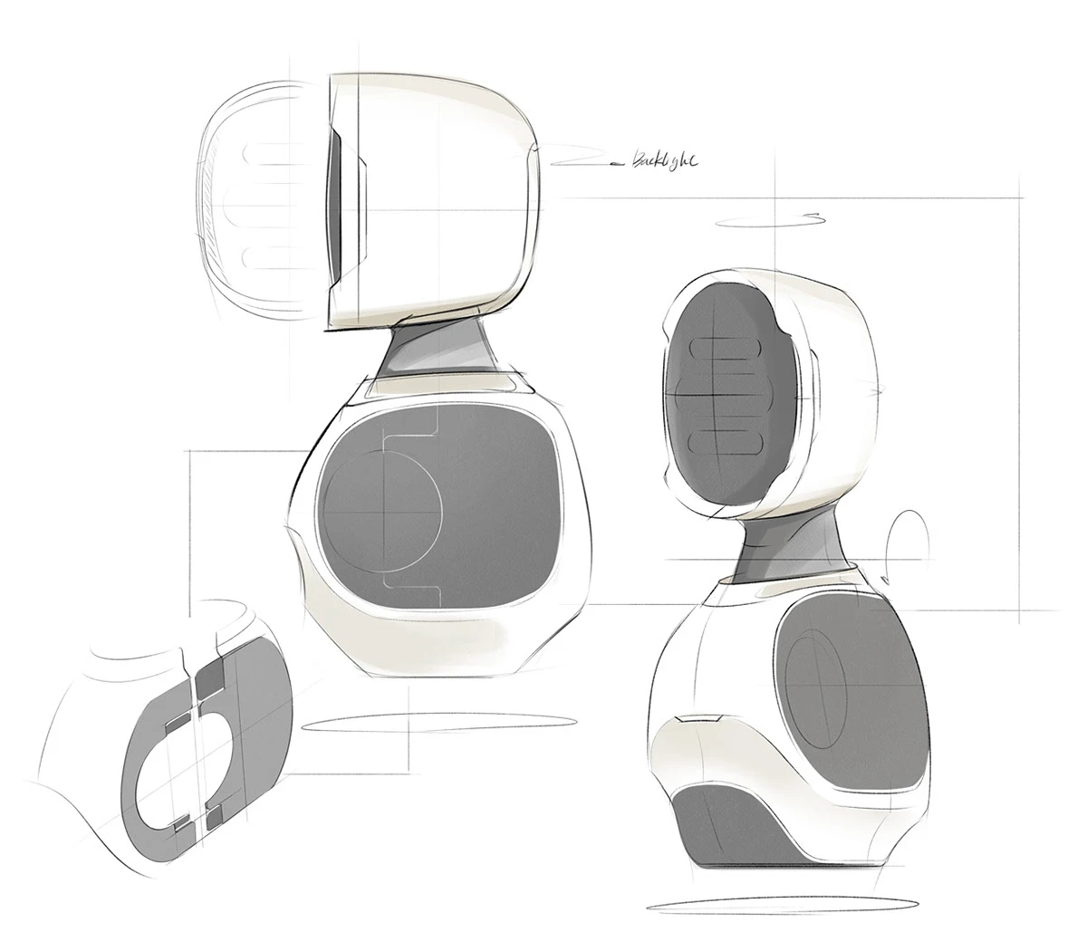 The head design plays a central role in shaping first impressions. ALLEX’s head avoids intimidation and does not suggest any specific face or expression. Its upper and lower sections frame a rounded facial form, minimizing unintended emotional cues while maintaining a neutral and approachable appearance.
