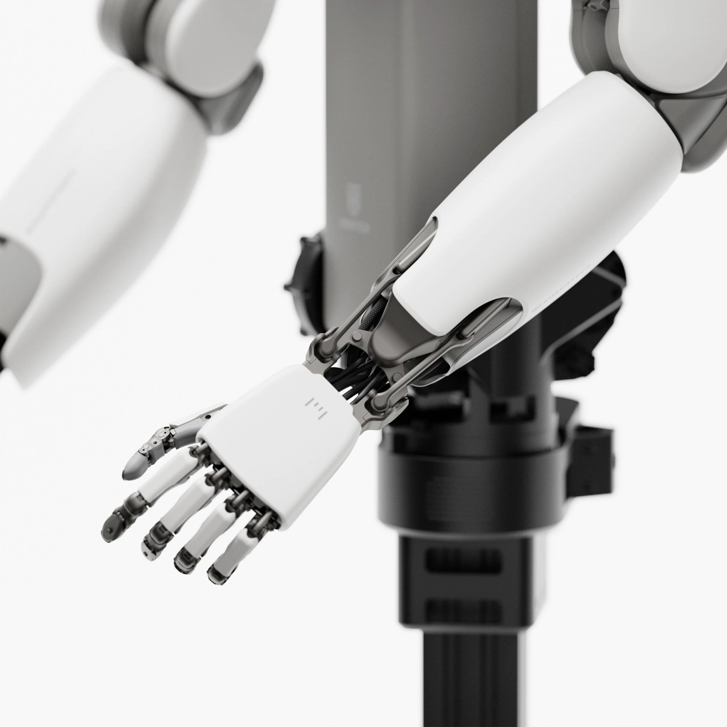The arms and hands of ALLEX were given a high degree of freedom to achieve natural and fluid movement. Their design highlights strength, flexibility, and precision while using simplified forms to maintain visual clarity. The shoulders and upper arms employ geometric volume that feels solid but not bulky, ensuring movements appear smooth and dynamic. The forearms feature refined curves and flowing lines, merging geometric shapes with organic contours for a polished appearance.