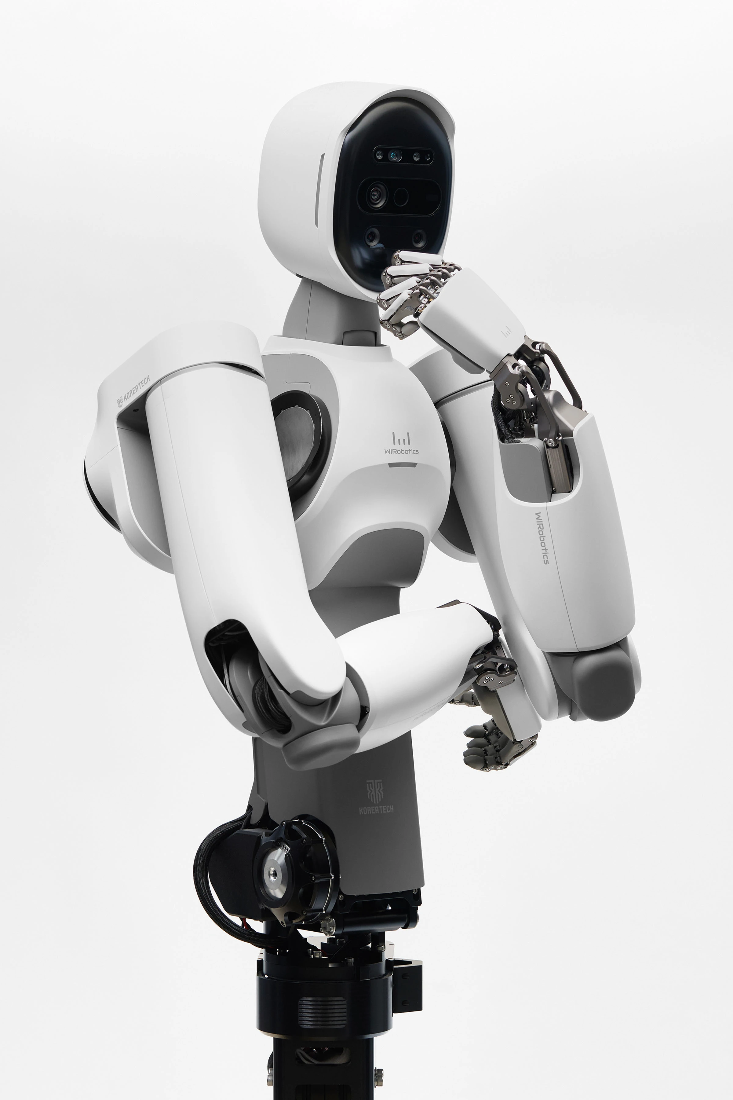 Developed by WIRobotics in collaboration with KOREATECH, ALLEX is a universal humanoid robot designed for delicate, human-like interaction. Its body uses back drivability technology that allows it to yield to external forces, absorb impacts, and move smoothly. The arms are built with low friction and rotational inertia, which makes them stop safely even when interrupted mid-motion. The hands rely on a purely mechanical structure to sense and adjust to external forces, without requiring tactile sensors. With 15 degrees of freedom and proportions similar to a human hand, they combine refined dexterity with powerful strength.