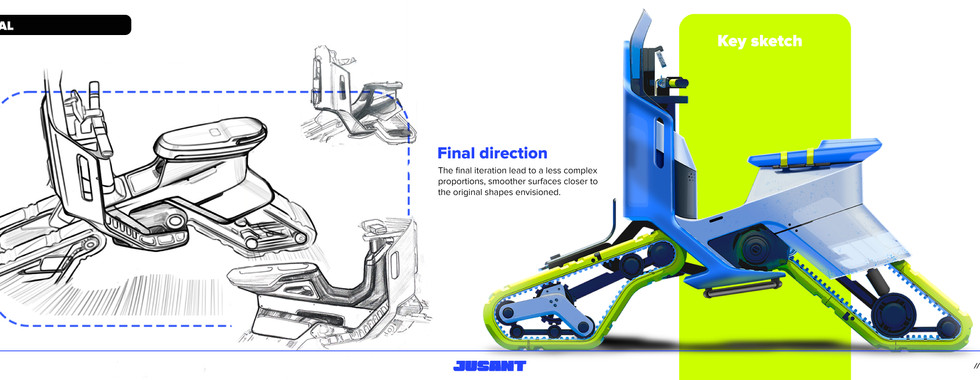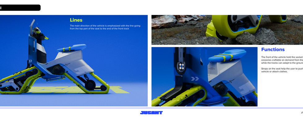 Jusant positions design as a practice of adaptation in the face of uncertainty. It speculates on new relationships between humans, technology, and environment, where what remains is used to sustain continuity. The vehicle becomes more than a product. It is a response to fractured systems, a symbol of resilience, and a tool for rethinking how we inhabit shifting futures.